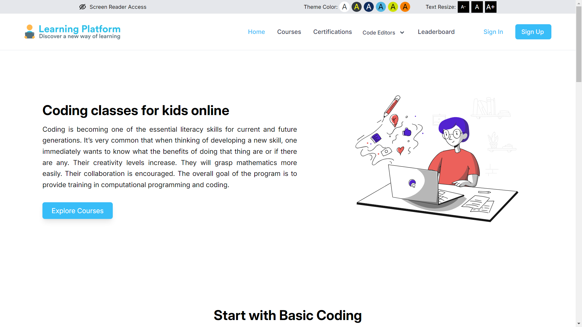 2. Inbuilt code editors for hands-on practice